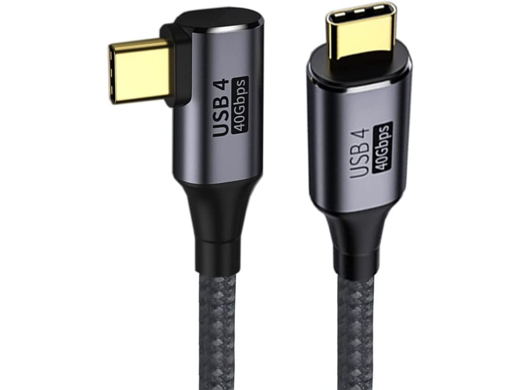 PremiumCord USB4 Gen 3x2 40Gbps 8K@60Hz 240W Thunderbolt 3 kabel 0,3mZahnutý 90° konektor zajištuje zapojení při nedostatku místa.