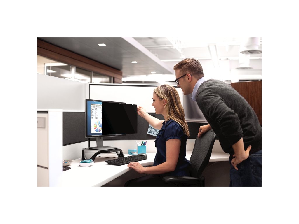 Ochrana citlivých a důvěrných dat se s narůstající četností využívání mobilních zařízení na pracovišti stává nutností. “Šmejdění přes rameno” se stává stále častějším způsobem vykrádání důvěrných firemních nebo osobních informací. Na veřejných místech, ale také během obchodních jednání se data jednoduše zapisují, nebo se fotografuje celá obrazovka. Pracujete-li na veřejně přístupném místě nebo v open-space kancelářích, privátní filtry Fellowes PrivaScreen™ zajistí ochranu Vašich dat. Osoba dívající se z boku pod úhlem 30° uvidí pouze černý displej. Data budou viditelná pouze pro osobu, která se nachází přímo před displejem.KLÍČOVÉ VLASTNOSTI