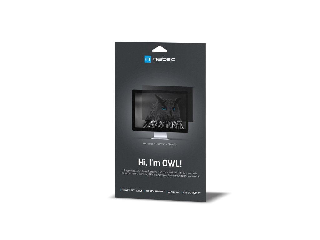 Seznamte se s Natec OwlFiltr pro ochranu soukromí Natec Owl je nenápadný překryvný prvek na obrazovku notebooku nebo monitoru počítače. Plní důležitou funkci zabezpečení osobních a důvěrných údajů. Filtr je k dispozici v mnoha velikostech: 13,3", 14", 15,6", 21,5", 23,8", 24", 27".