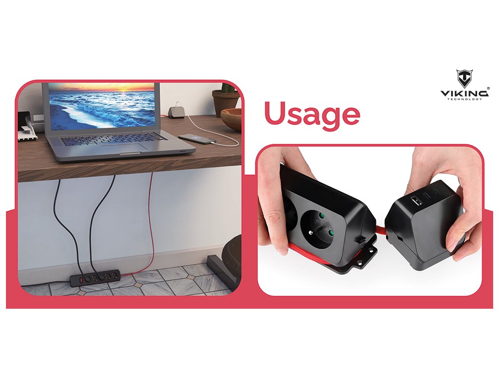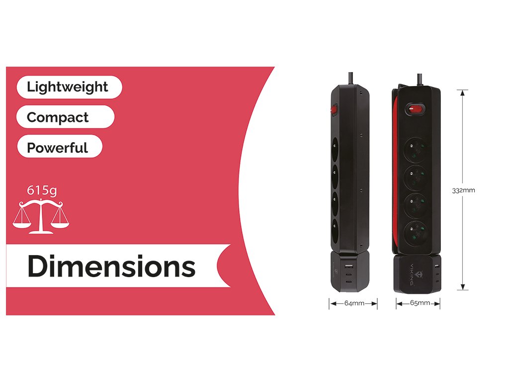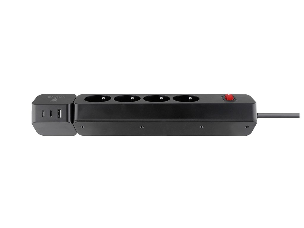 Prodlužovací zásuvka • 4 x AC (230V, 16A, 3680W) výstup • 1 x USB-A (5V/3A) • 2 x USB-C (5V/3A) • USB-A + 2 x USB-C (5V/3,4A, 17W) • flexibilní design s možností rozdělení • kompaktní rozměry • možnost zapojení až 7 zařízení současněProdlužovací zásuvka s USB Viking R43S