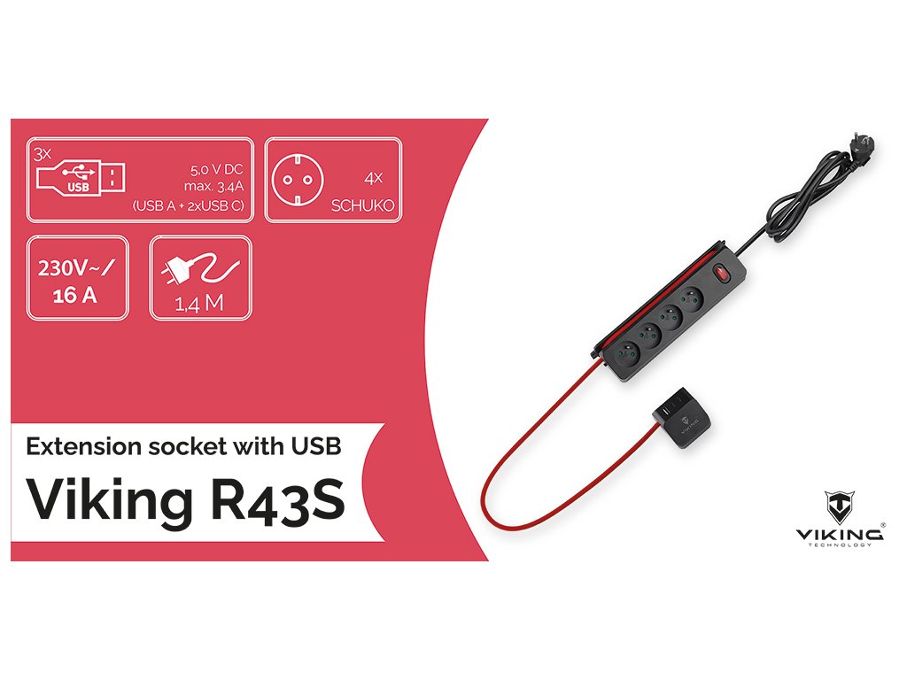 1 ks - Prodlužovací zásuvka s USB Viking R43S