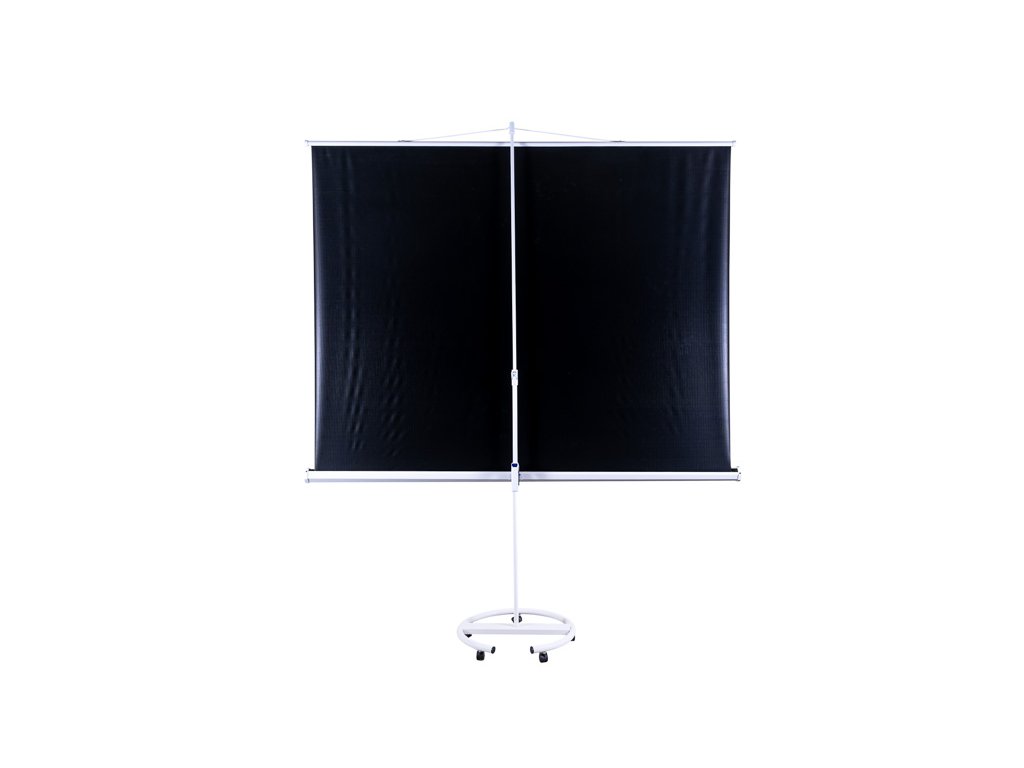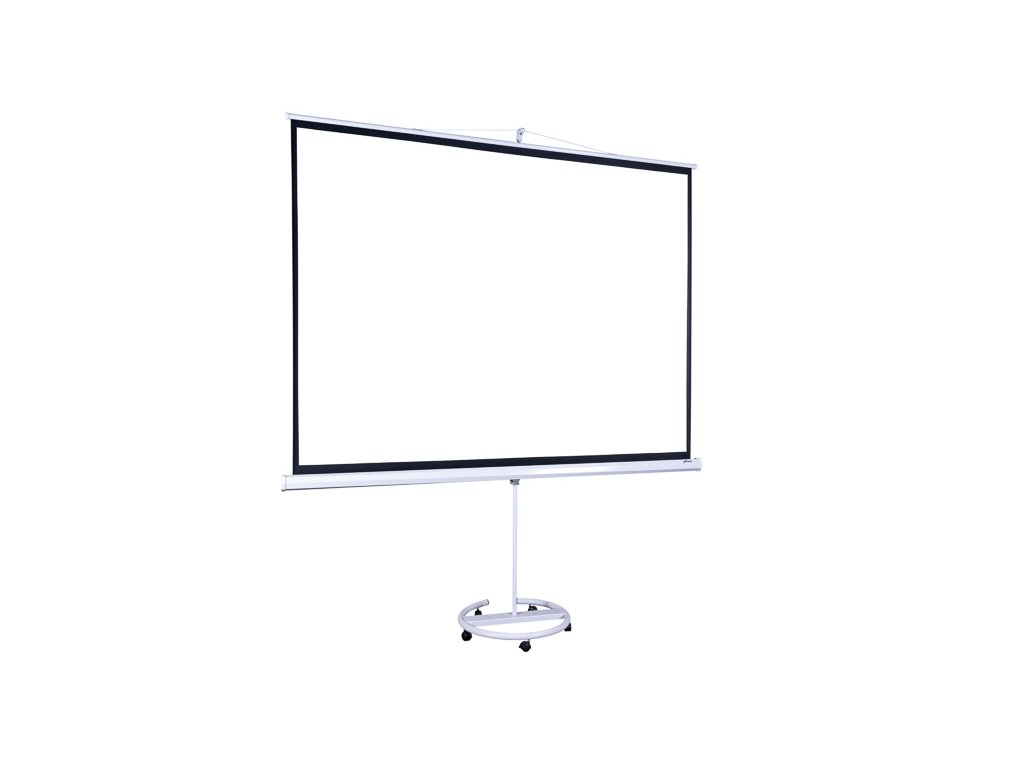 Mobilní stativové projekční plátno AVELI má stabilní základnu s pěti kolečky. Plátno je matně bílé s černým orámováním s formátem 4:3.Promítací plocha má formát: 4:3