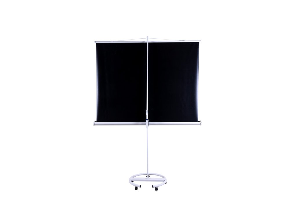 Mobilní stativové projekční plátno AVELI má stabilní základ s pěti kolečky. Plátno je matně bílé s černým orámováním s formátem 4:3.Promítací plocha má formát 4:3