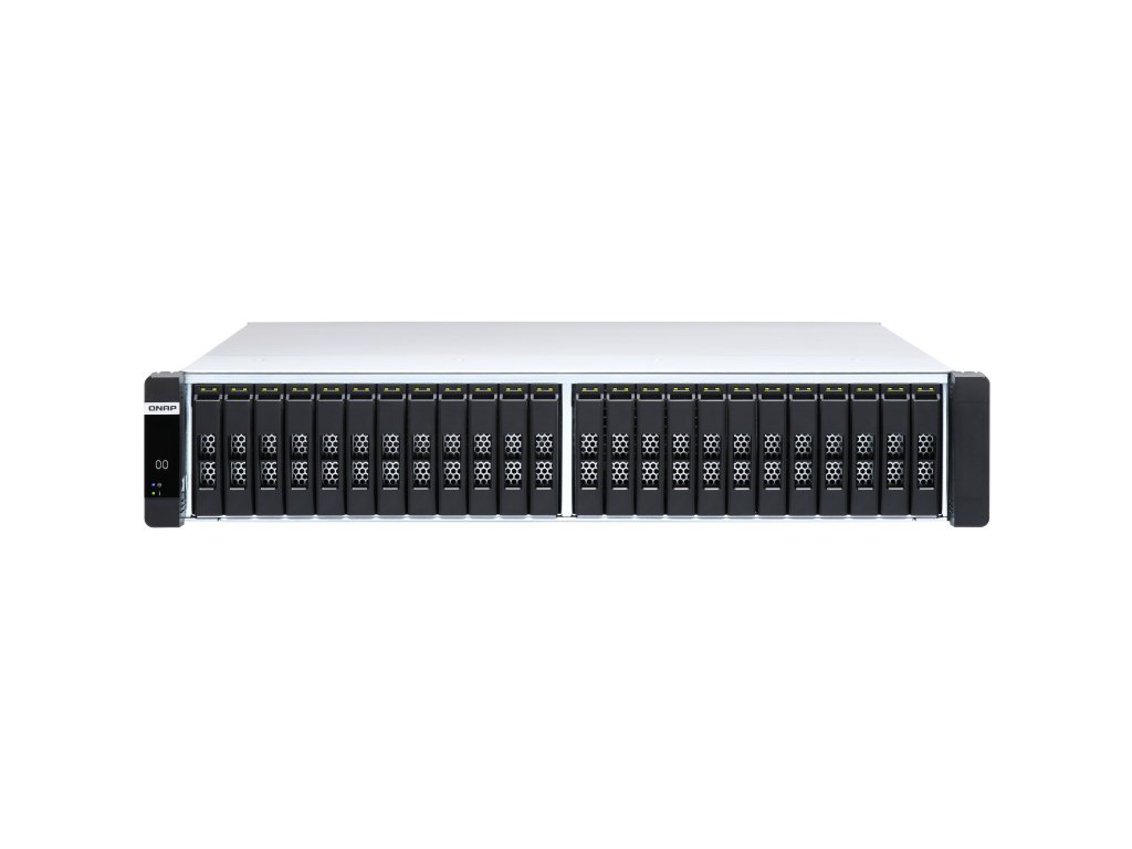 Úložiště NAS ES2486dc Enterprise ZFS je první úložiště NAS s vysokou dostupností s poli typu flash a duálními aktivními řadiči. S procesorem Intel® Xeon® D-2142IT s 8 jádry/16 vlákny podporuje ES2486dc až 24 × 2,5” disků SSD SAS 12 Gb/s a nabízí vynikající propustnost vstupů/výstupů. Výkonnost náhodného zápisu podporuje také operační systém QES 2.1.1, jenž je optimalizovaný pro pole typu all-flash a který je předinstalovaný na zařízení ES2486dc. Systém QES využívá ZFS pro podporu správy logických svazků; inline blokové odstraňování duplicitních dat a inline komprese snižují využití vstupů/výstupů a kapacity disků SSD, což významně prodlužuje životnost disků SSD s lepším poměrem cena-výkon pro všechny pole úložiště s podporou Flash. S téměř neomezenými snímky, nástrojem SnapSync pro ochranu dat a QES splňuje úložiště ES2486dc požadavky k nasazení pro náročné obchodní aplikace, jako jsou klíčové souborové servery, virtualizační centra, VDI, datová centra střední velikosti, streamování videí, úložiště dozoru a efektivní zálohování souborů a obnovení.