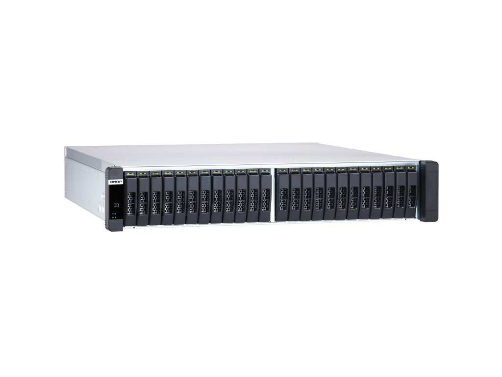 Úložiště NAS ES2486dc Enterprise ZFS je první úložiště NAS s vysokou dostupností s poli typu flash a duálními aktivními řadiči. S procesorem Intel® Xeon® D-2142IT s 8 jádry/16 vlákny podporuje ES2486dc až 24 × 2,5” disků SSD SAS 12 Gb/s a nabízí vynikající propustnost vstupů/výstupů. Výkonnost náhodného zápisu podporuje také operační systém QES 2.1.1, jenž je optimalizovaný pro pole typu all-flash a který je předinstalovaný na zařízení ES2486dc. Systém QES využívá ZFS pro podporu správy logických svazků; inline blokové odstraňování duplicitních dat a inline komprese snižují využití vstupů/výstupů a kapacity disků SSD, což významně prodlužuje životnost disků SSD s lepším poměrem cena-výkon pro všechny pole úložiště s podporou Flash. S téměř neomezenými snímky, nástrojem SnapSync pro ochranu dat a QES splňuje úložiště ES2486dc požadavky k nasazení pro náročné obchodní aplikace, jako jsou klíčové souborové servery, virtualizační centra, VDI, datová centra střední velikosti, streamování videí, úložiště dozoru a efektivní zálohování souborů a obnovení.