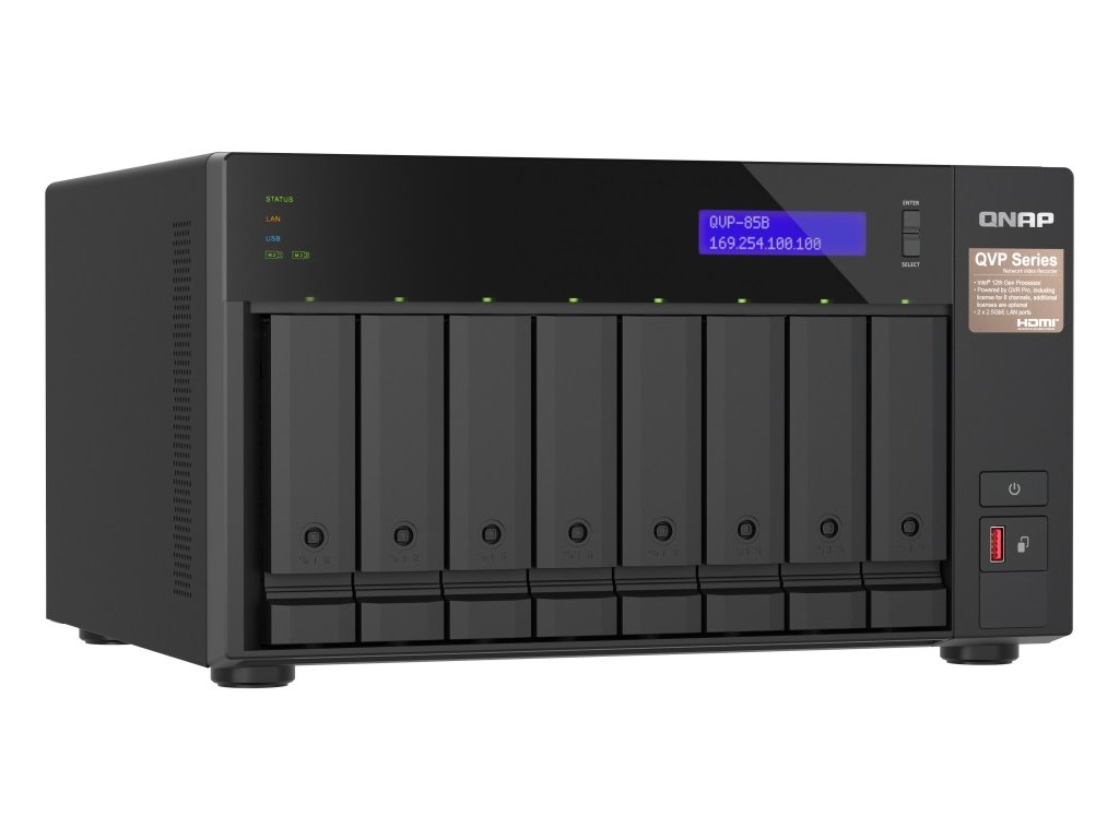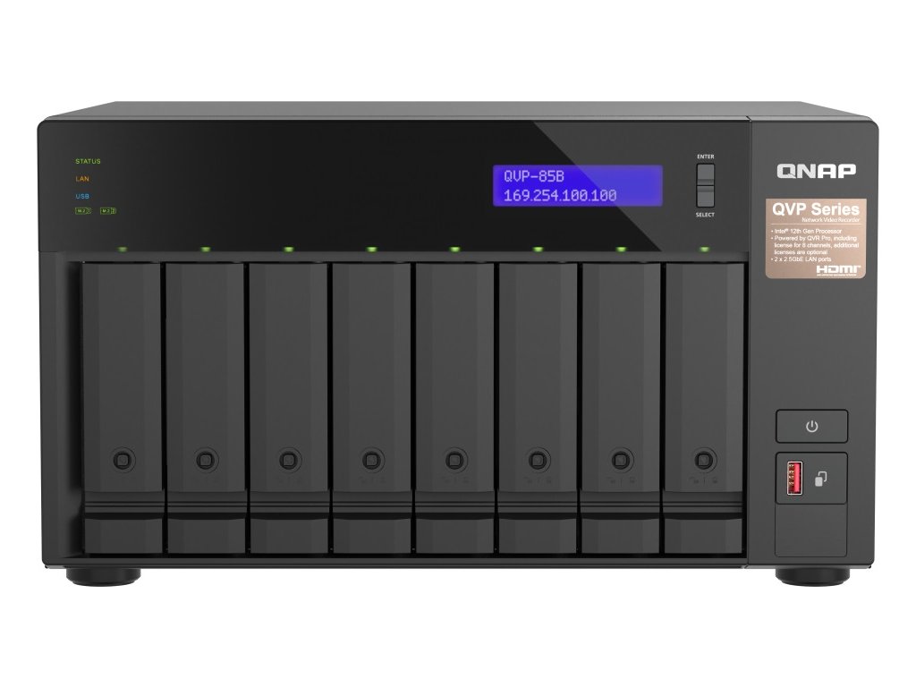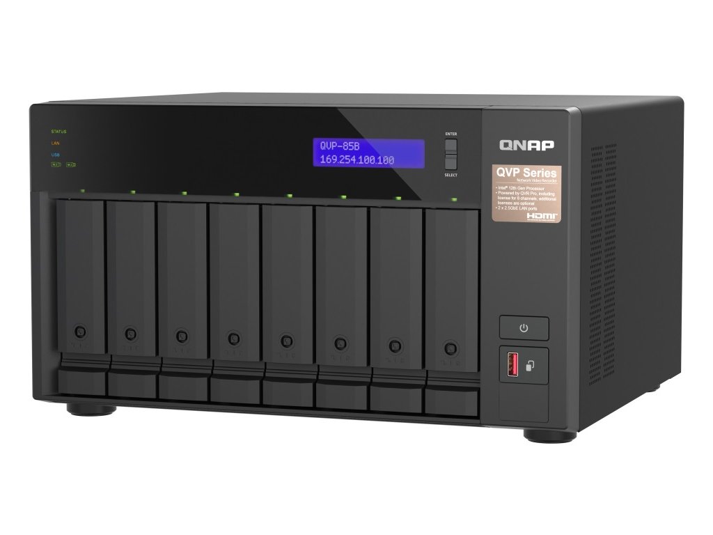 QNAP NVR QVP-85B (6core 4,4GHz, 32GB RAM, 8xSATA, 2xGbE, 2xM.2 NVMe Gen4, 2xPCIe, kamery: 8 (max 64)