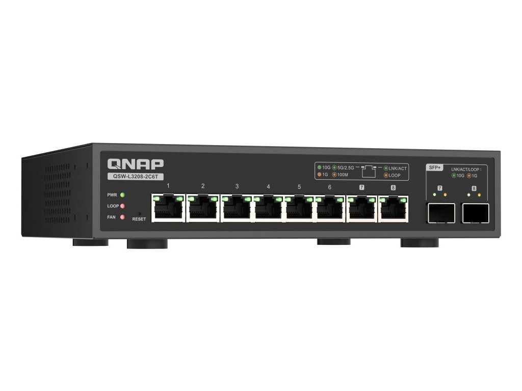 QNAP switch QSW-L3208-2C6T (6x 10GbE port, 2x 10G SFP+/NBASE-T Combo, Lite Managed)