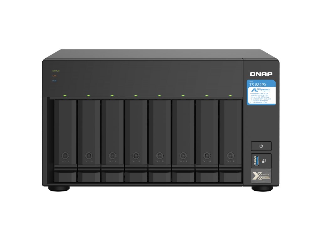 QNAP TS-832PX-4G (1,7GHz, 4GB RAM, 8x SATA, 2x 2,5GbE, 2x 10G SFP+, 1x PCIe slot, 3x USB 3.2)