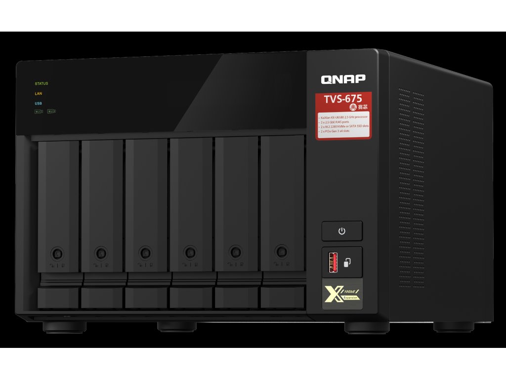 TVS-675 je vybaven 8jádrovým procesorem Zhaoxin KaiXian KX-U6580 s architekturou x86 a poskytuje podnikům moderní 2,5GbE NAS řešení pro řešení každodenních úkolů, jako je zálohování / obnovení souborů, a pro podporu týmové spolupráce s vyšší produktivitou. Kromě hardwarových výhod s integrovanými sloty M.2 SSD pro zrychlení mezipaměti a rozšíření PCIe podporuje TVS-675 bohaté obchodní a mediální aplikace, vedle rozšiřitelné úložné kapacity a aplikací na vyžádání, což z něj činí nákladově efektivní a spolehlivé úložiště dat a mediální NAS.