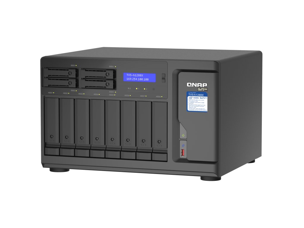 QNAP TVS-h1288X-W1250-16G (Xeon 3,3GHz, ZFS, 16GB ECC RAM, 8x 3,5"+ 4x 2,5", 2x M.2 NVMe, 4x 2,5GbE)