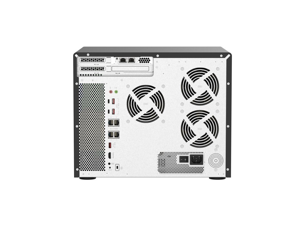 Vysokokapacitní TVS-h1688X je vybaven výkonným procesorem Intel® Xeon® W a umožňuje instalaci dvou rozšiřujících karet QNAP QXP-T32P Thunderbolt™ 3 PCIe (prodává se samostatně) pro dosažení čtyř portů Thunderbolt™ 3, což z něj dělá perfektní doplněk pro Thunderbolt Uživatelé Mac® a Windows® s vybavením pro vysokorychlostní spolupráci médií. Integrované připojení 10GbE a 2,5GbE podporuje Port Trunking a failover, aby dále uspokojily podnikové aplikace náročné na šířku pásma a spolehlivost. TVS-h1688X běží na operačním systému QuTS hero založeném na ZFS a podporuje deduplikaci a kompresi vložených dat na úrovni bloků, téměř neomezené snímky, technologii SnapSync v reálném čase a mezipaměť pro čtení / zápis, což vašemu podnikání pomůže dosáhnout vysokého výkonu, od kreativních pracovních postupů až po souborový server, virtualizační server a efektivní aplikace pro zálohování a obnovu souborů.
