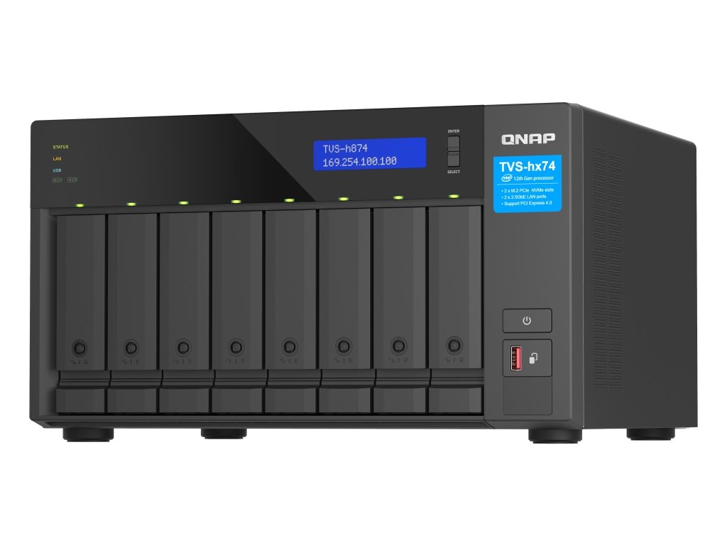 S procesorem Intel Core, který podporují operační systém QuTS hero na bázi ZFS, zajišťuje SMB NAS TVS-h874 integritu dat a podporuje deduplikaci a kompresi dat na úrovni bloků, téměř neomezené snímky, SnapSync v reálném čase a optimalizaci SSD. Ať už jde o souborové servery s kritickým významem, virtualizační servery, kolaborativní úpravy videí nebo efektivní aplikace pro zálohování a obnovu dat, zařízení TVS-h874 představuje ideální řešení NAS. Vysoce výkonný TVS-h874 poskytuje rozšiřitelnost PCIe Gen 4 (až dvojnásobná přenosová rychlost oproti Gen 3), M.2 NVMe SSD cache a připojení 2,5GbE pro vysokorychlostní virtualizační síťová prostředí.