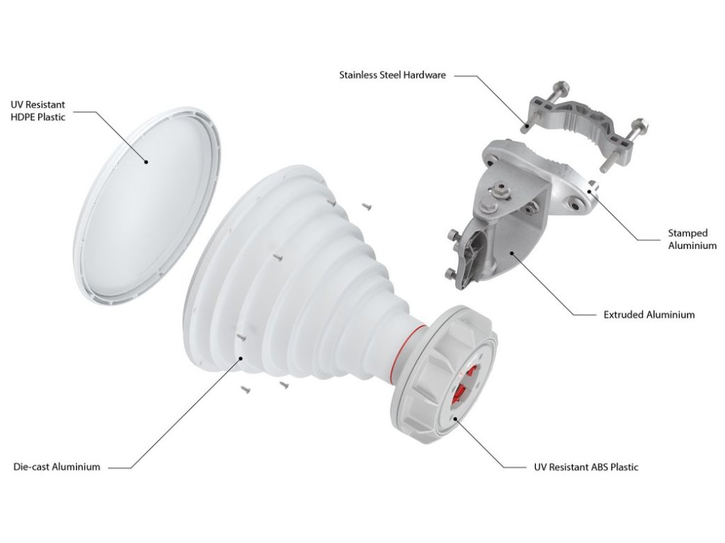 Symetrické sektorové antény jsou vytvořeny pomocí pevné kovové konstrukce. Při výrobě byly použity ty nejlepší dostupné materiály: odlitky z hliníku, vysoce kvalitní ABS plast a nerezová ocel.