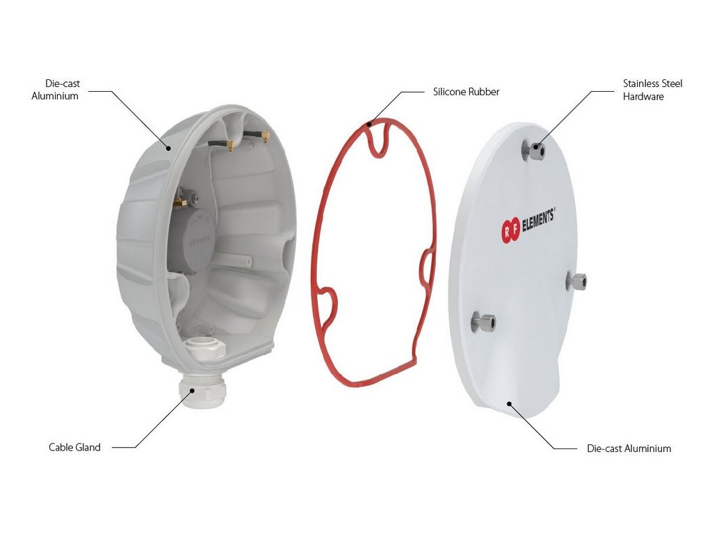 TPA-RBC nabízí vedle kabelové průchodky pro ethernetový kabel také tři předlisované otvory pro RSMA konektory pro připojení dalších antén.
