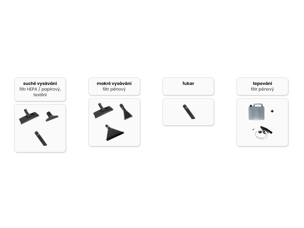 Salente Combo 4v1, vysavač pro mokré a suché vysávání, tepovač, fukar, nerez nádoba