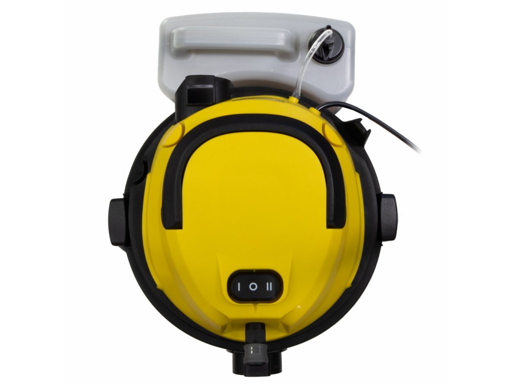 Tělo vysavače je vyrobeno pevného plastu, odolného proti nárazům a rzi. Masivní madlo a čtyři pojezdová kola zajistí snadnou manipulaci a stabilitu. Velký objem nádoby na odpad a odnímatelné nádoby na saponát zajistí úklid po dlouhou dobu. Dvě kovové trubky, vysávací hadice a dlouhá přívodní napájecí šňůra zajistí dostatečně velký akční rádius pro úklid vaší domácnosti.