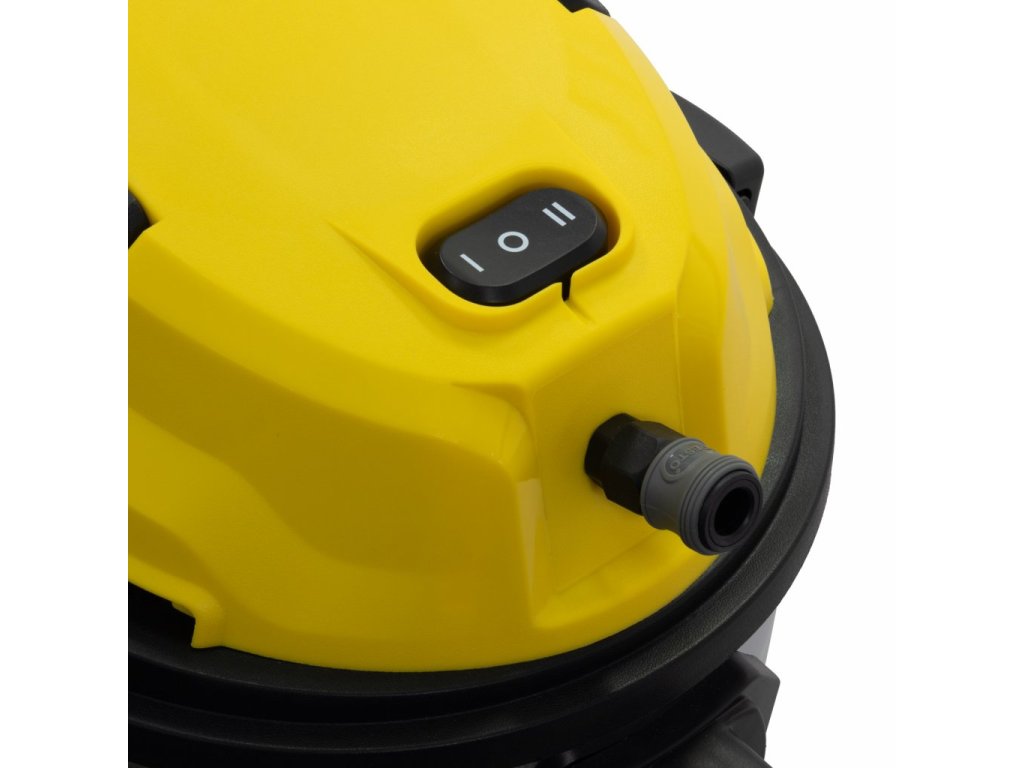 Vysavač disponuje vysokým sacím výkonem, díky kterému vysajete všechny nečistoty ve vaší domácnosti nebo dílně. Nečistoty lze vysávat přímo do nádoby o objemu 20 litrů nebo do papírového sáčku. Můžete tak tedy vysávat se sáčkem i bez něj. Vysavač využít i pro mokré vysávání. Lze s ním tedy vysávat mokré nečistoty, kapaliny nebo například akvárium. Ve vysavači je bezpečnostní systém, který zabrání poškození vysavače kapalinou a upozorní vás na nutnost vyprázdnění nádoby. Z vysavače lze také snadným přepojením hadice získat výkonný fukar na listí nebo nečistoty.