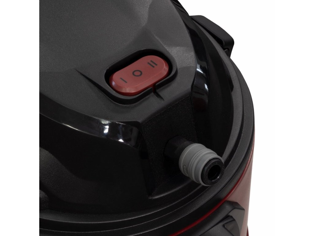 Vysavač disponuje vysokým sacím výkonem, díky kterému vysajete všechny nečistoty ve vaší domácnosti nebo dílně. Nečistoty lze vysávat přímo do nádoby o objemu 20 litrů nebo do papírového sáčku. Můžete tak tedy vysávat se sáčkem i bez něj. Vysavač využít i pro mokré vysávání. Lze s ním tedy vysávat mokré nečistoty, kapaliny nebo například akvárium. Ve vysavači je bezpečnostní systém, který zabrání poškození vysavače kapalinou a upozorní vás na nutnost vyprázdnění nádoby. Z vysavače lze také snadným přepojením hadice získat výkonný fukar na listí nebo nečistoty.
