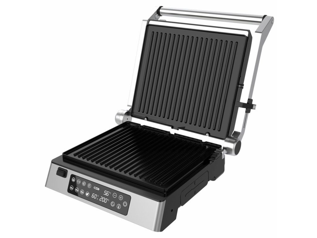 Jednoduchost obsluhy i jednoduchost čištění doplňuje digitální ovládací panel s displejem vybavený dotykovými senzory. Stačí pouhý dotek prstem na příslušnou ikonu na displeji a gril okamžitě reaguje a plní vaše příkazy. Tento beztlačítkový ovládací prvek se vyznačuje zejména výrazně vyšší životností oproti klasickým ovládacím tlačítkům a navíc jej lze pohodlně udržovat a čistit díky absenci mechanických prvků a výstupků. Hladký celistvý povrch se proto velmi jednoduše udržuje a čistí – stačí pouze jemně setřít vlhkým hadříkem.