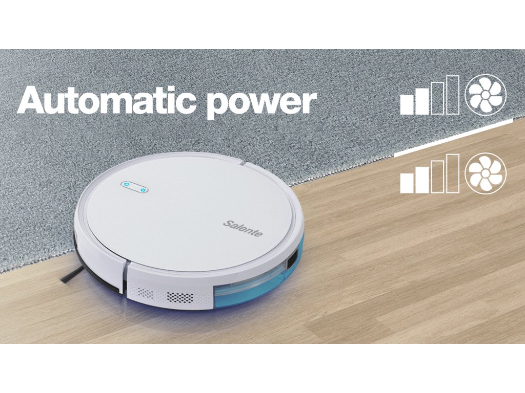 Vysavač automaticky detekuje typ podlahy a přizpůsobuje mu sací výkon. Po najetí na koberec se výkon zvýší pro účinnější úklid a po návratu na dlažbu nebo plovoucí podlahu se výkon vrátí na původní hodnotu.