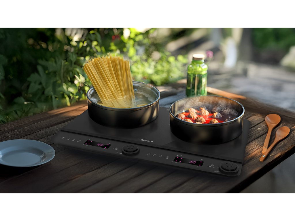 Zabírá minimum místa, ale zvládne uvařit takřka cokoliv. O čem je řeč? Přece o dvouplotýnkovém indukčním vařiči Salente InductPro2, který se pyšní kompaktním a ultratenkým designem (výška jen 4,5 cm), takže se vám bez problému vejde i do malé kuchyňky, na chatu nebo třeba do karavanu. Svoje oblíbená domácí jídla si s ním zkrátka můžete pohodlně připravovat kdekoliv, kde máte k dispozici zásuvku.