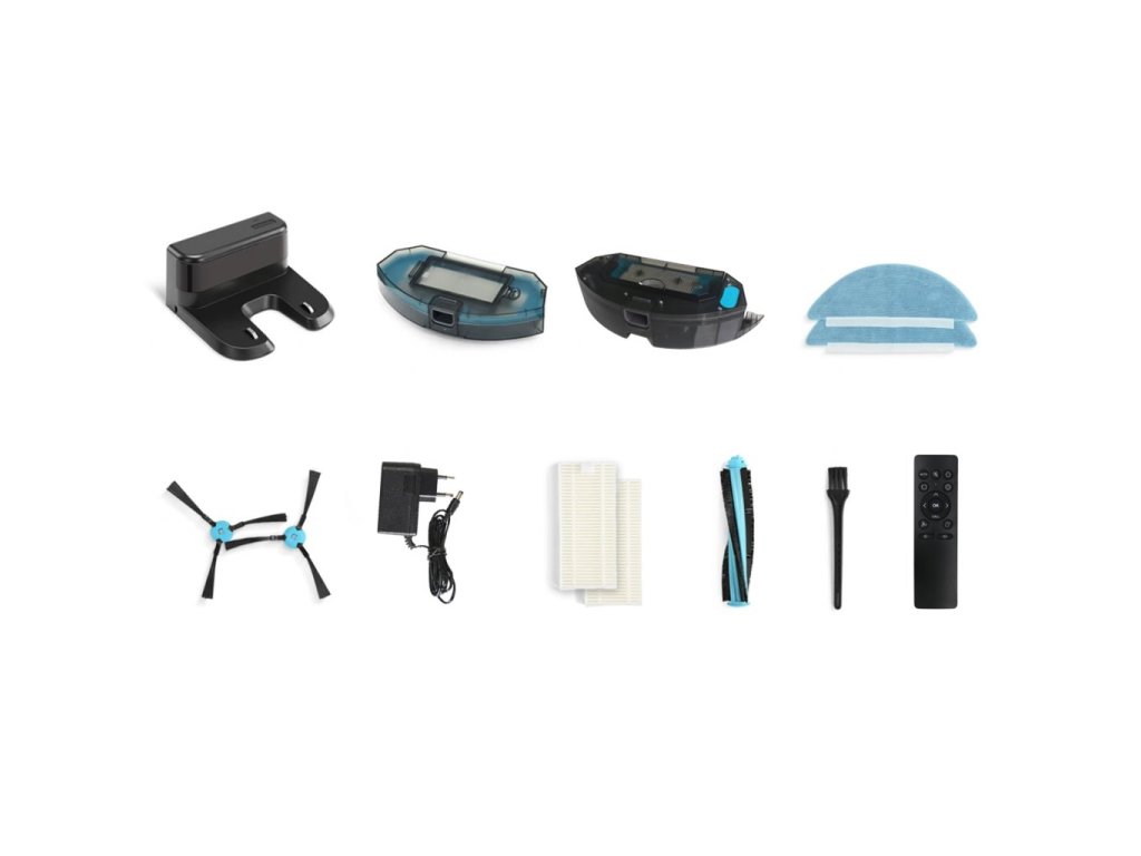SALENTE L6, laserový robotický vysavač (stírání vodou a nabíjecí stanice)360° laserová navigace při úklidu, mluví česky, mobilní aplikace v češtině, vysává a vytírá současně, přizpůsobení povrchu podlahy, automatické pokračování v úklidu, kombinovaná nádoba na vodu a prach, plánovaný úklid, zónový úklid, TOF senzor, virtuální zeď