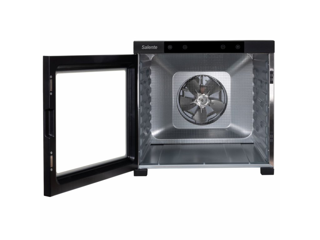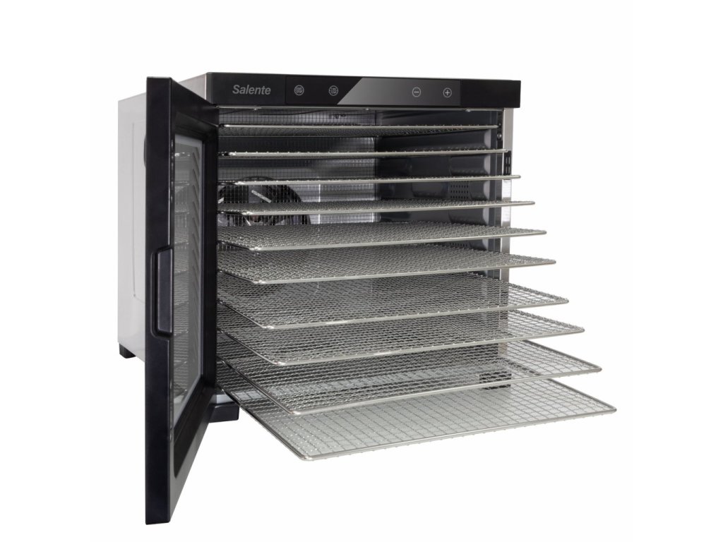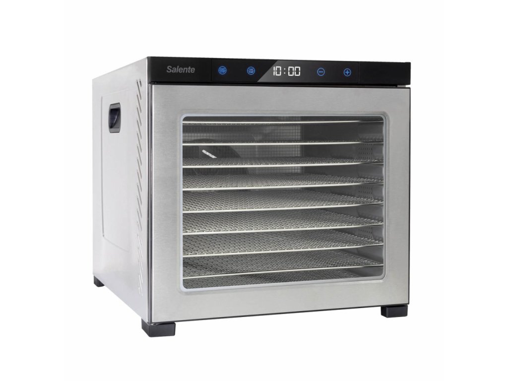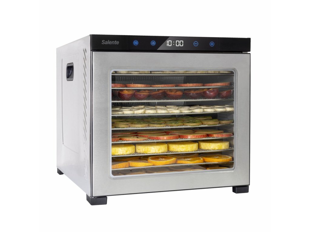 Celonerezová profesionální sušička Salente QuickDry nabízí rovnoměrné sušení hub, ovoce, zeleniny, bylinek, čaje a dalších surovin s maximálním uživatelským komfortem díky senzorickému dotykovému ovládacímu panelu s digitálním displejem a velmi jednoduchým nastavením teploty i času s možností libovolné změny nastavených hodnot i v průběhu sušení. Teplotu lze nastavit v rozsahu 35-75 °C v krocích po 5 °C, čas lze nastavit v rozsahu 30 min. až 24 hodin v krocích po 30 minutách. Díky použitým materiálům má prodlouženou životnost a velmi snadno se udržuje a čistí.