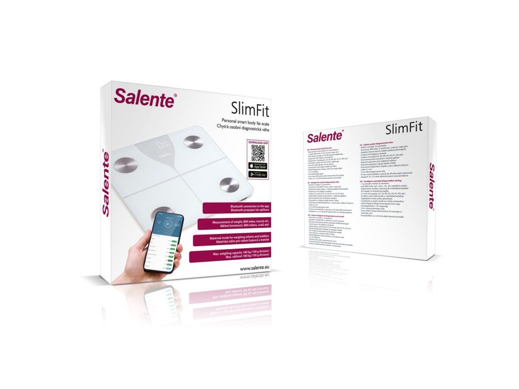 • Salente SlimFit, chytrá osobní diagnostická fitness váha, Bluetooth, bílá (PartNo: SLIMFIT-WH)