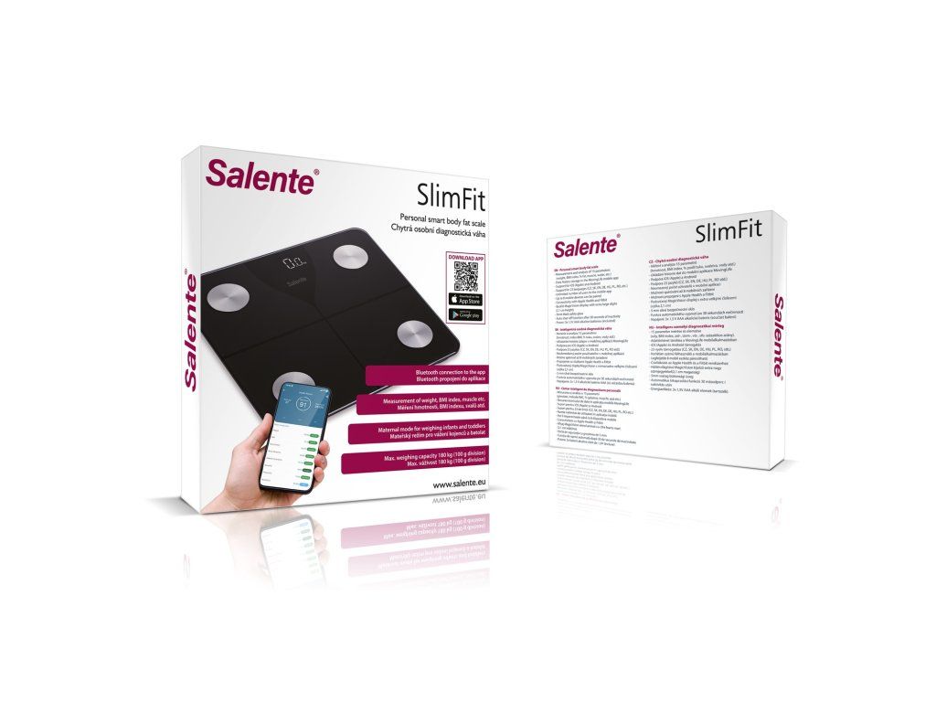 • Salente SlimFit, chytrá osobní diagnostická fitness váha, Bluetooth, černá (PartNo: SLIMFIT-BK)