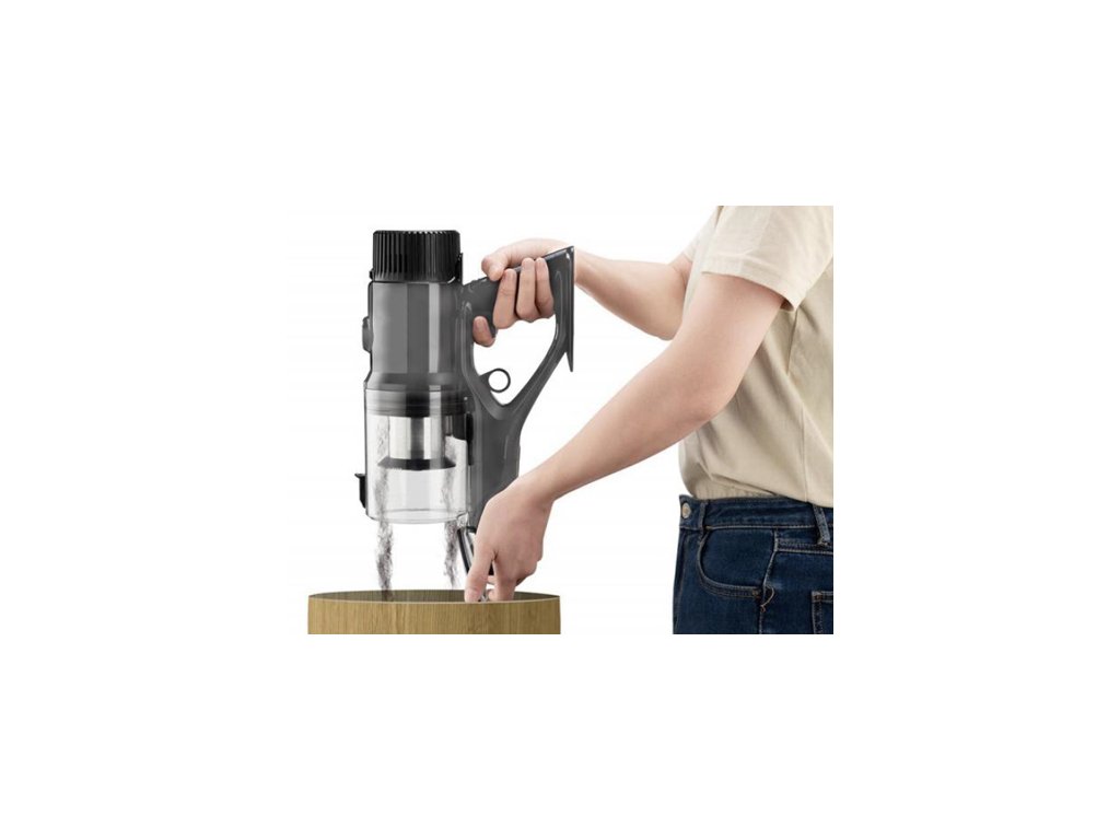 Údržba vysavače je velmi jednoduchá a k jeho provozu nepotřebujete papírové výměnné sáčky. Nečistoty jsou vysávány do nádobky o obsahu 0,7 litru. Nádobka je navíc doplněna o zpětnou klapku, která zabraňuje vypadávání nečistot při manipulaci s vysavačem. Po ukončení úklidu jednoduše uvolníte západku na nádobce a veškerý obsah vysypete. Filtr je omyvatelný a lze ho vyčistit a používat opakovaně.
