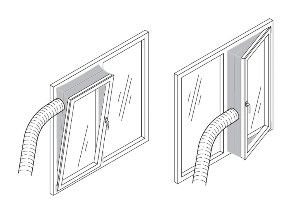 • Odvodu teplého vzduchu z místnosti přes dodávanou flexibilní hadici a těsnění do okna