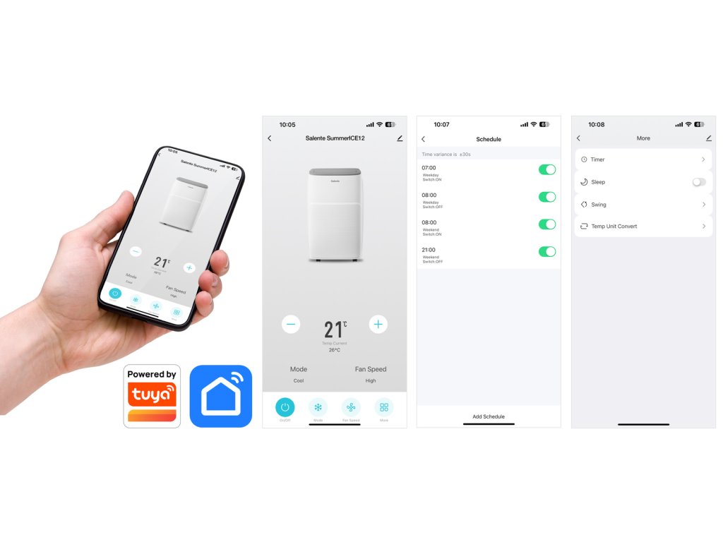 Salente SummerICE12, chytrá mobilní klimatizace, 12000 BTU, WiFi+Bluetooth, dálk. ovl.
