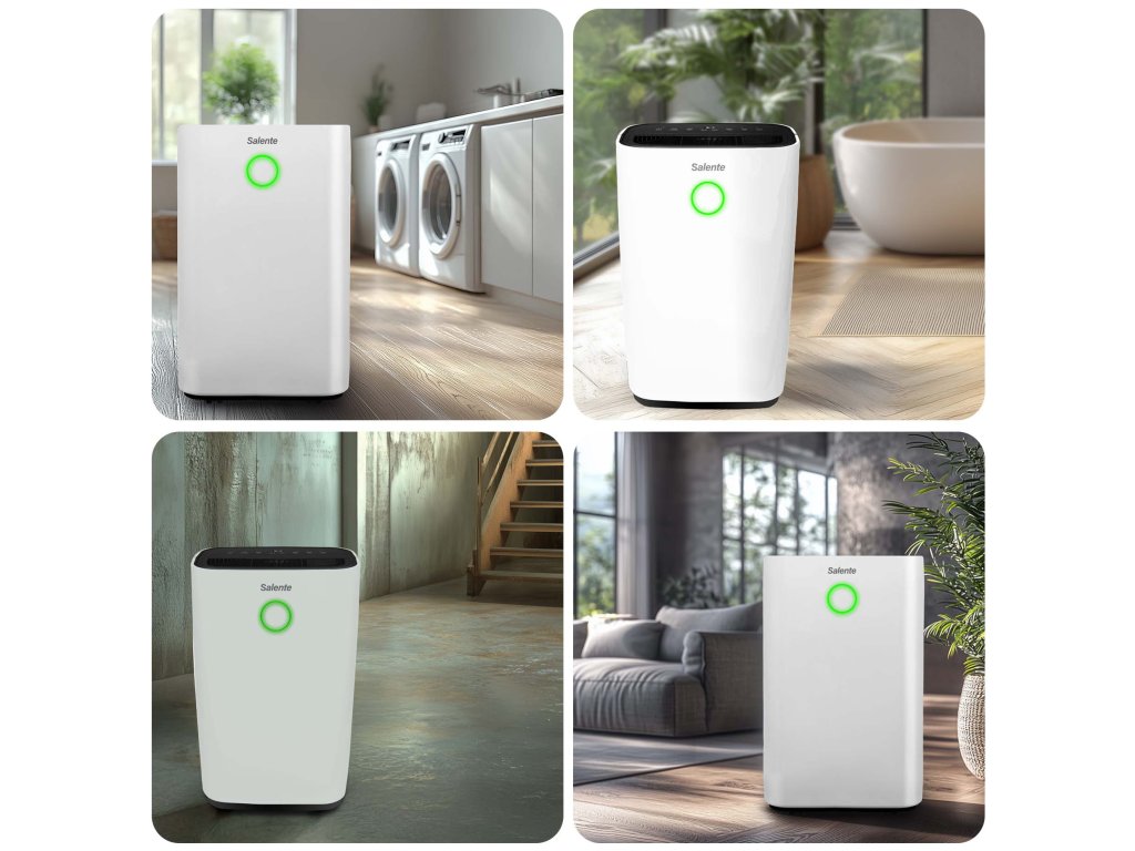 Salente WaterStar20 je skutečným hrdinou v boji s vlhkostí. Tento moderní odvlhčovač můžete využít v jakékoliv místnosti do velikosti 100 m2 – efektivně si poradí s problémy, jako jsou plísně, zatuchlý vzduch, orosená okna nebo nadměrná vlhkost způsobená přetápěním.
