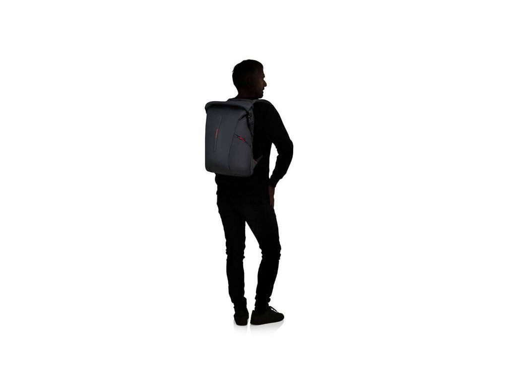 Praktický a stylový batoh Samsonite Rolltop Backpack L z kolekce ECODIVER.Materiál: 100 % hmotnosti vnější tkaniny je vyrobeno z postindustriálního recyklovaného nylonu a spotřebitelsky recyklovaného PET plastu. Nejméně 95 % hmotnosti vnitřní podšívky a nejméně 90 % hmotnosti zipu je vyrobeno z recyklovaného PET plastu. Celkové využití recyklovaného PET plastu po spotřebiteli šetří před uložením na skládku ekvivalent 13 plastových lahví na vodu (0,5 l - 20 g).