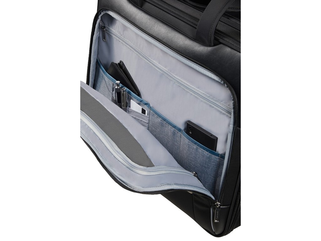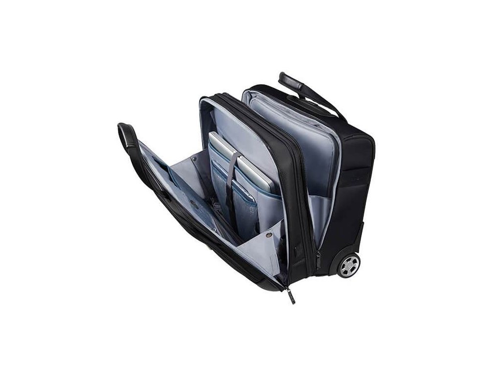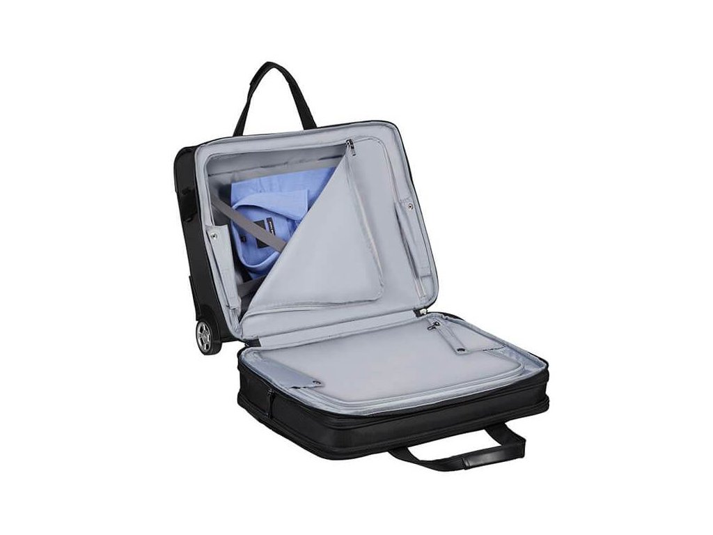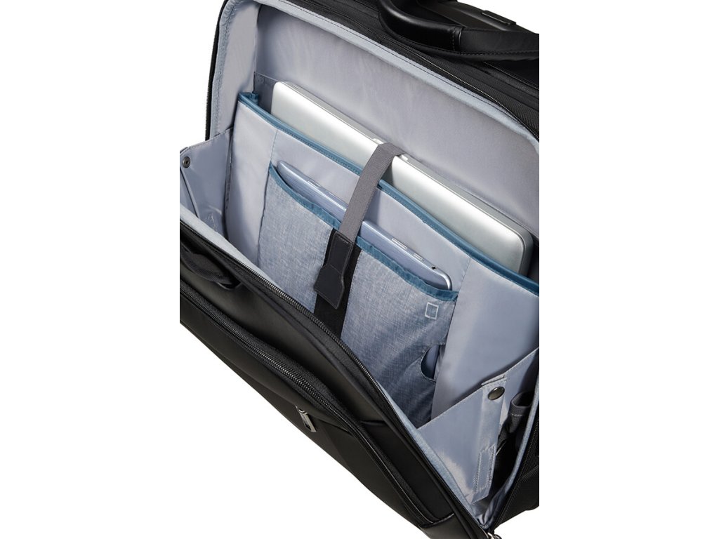 Brašna na kolečkách na notebook ROLLING TOTE 17,3" EXP. z kolekce SPECTROLITE 3.0 má z pření strany samostatnou kapsu na zip s organizérem. Brašna je rozdělena do dvou částí. V jedné jsou kapsy na zip, přihrádky na dokumenty + polstrovaná přihrádka na tablet. Ve druhé části je polstrovaná přihrádka na notebook + přepážkou na zip oddělený prostor na oděvy opatřen křížovými upínacími pásy. Tato část se dá celá otevřít a zip je možné uzamknout Na zadní straně je smart sleeve.Materiál: 55% Polyester + 40% Nylon + 5% PU