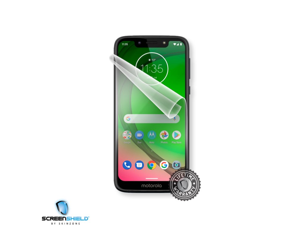 Kvalitní fólie Screenshield představuje skvělý nástroj pro dlouhodobé zachování displeje Vašeho telefonu MOTOROLA Moto G7 PLAY XT1952-1 v perfektní kondici. Zajistí dokonalou ochranu před odřením jakéhokoliv charakteru. Přitom je průhledná a zakryje již existující drobné škrábance. Díky její extrémní odolnosti si také výrobce může dovolit poskytovat na ní doživotní záruku. Součástí tohoto produktu je ochrana displeje na bázi průhledné polyuretanové fólie.Dodatočné parametre