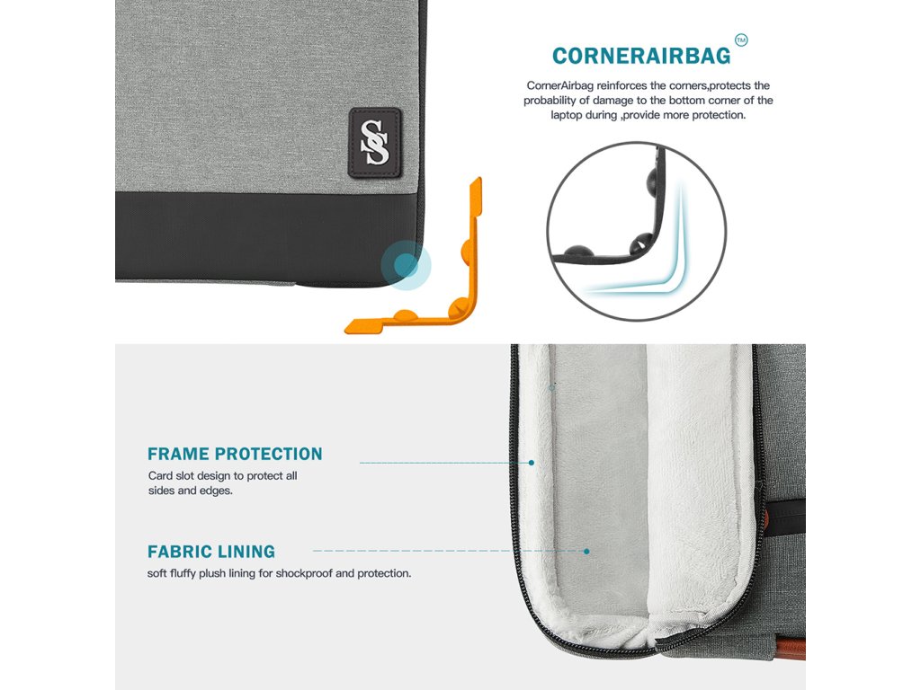 Taška je vyrobena ze tří vrstev textilie - vnější voděodolný materiál, který odolá cákancům vody, střední nárazu vzdorný materiál a vnitřní měkký materiál. Díky těmto třem textiliím máte jistotu, že je vaše zařízení v bezpečí za všech okolností. Rohy brašny jsou navíc opatřeny ochranou rohů zařízení.