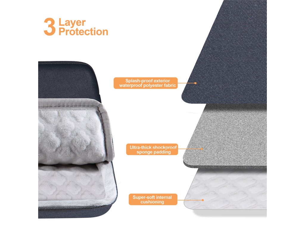 Taška je vyrobena ze tří vrstev textilie - vnější voděodolný materiál, který odolá cákancům vody, střední nárazu vzdorný materiál a vnitřní měkký materiál. Díky těmto třem textiliím máte jistotu, že je vaše zařízení v bezpečí za všech okolností. Rohy brašny jsou navíc opatřeny ochranou rohů zařízení.