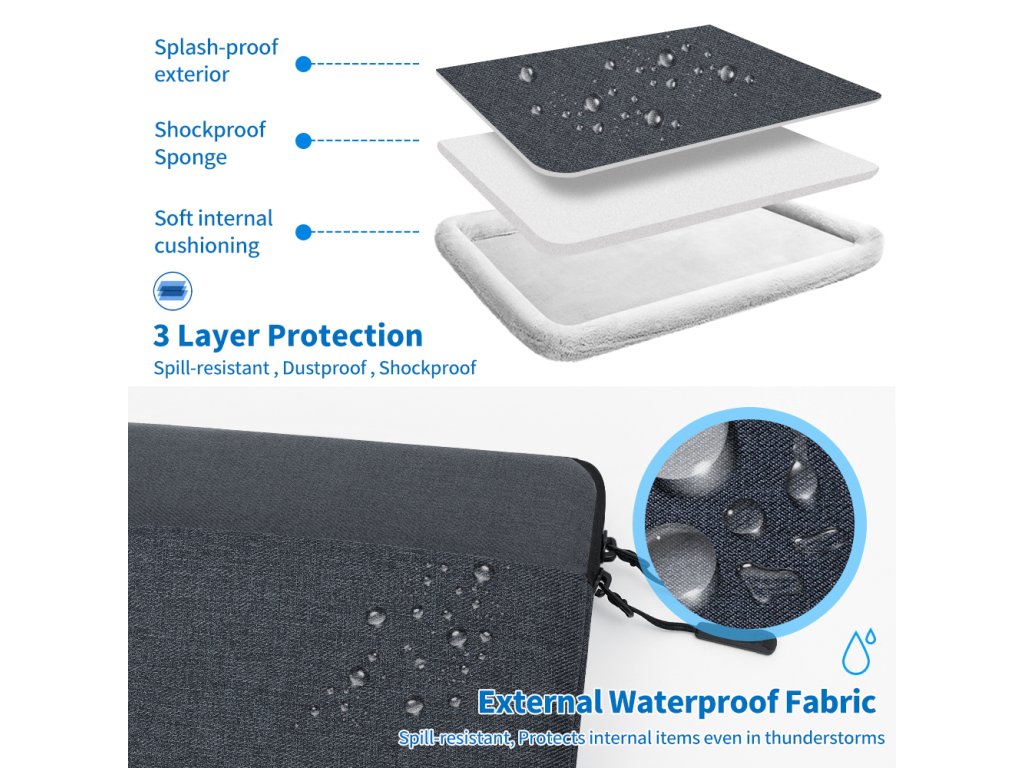 Taška je vyrobena ze tří vrstev textilie - vnější voděodolný materiál, střední nárazu vzdorný materiál a vnitřní měkký materiál. Díky těmto třem textiliím máte jistotu, že je vaše zařízení v bezpečí za všechn okolností. Rohy brašny jsou navíc opatřeny ochranou rohů zařízení.