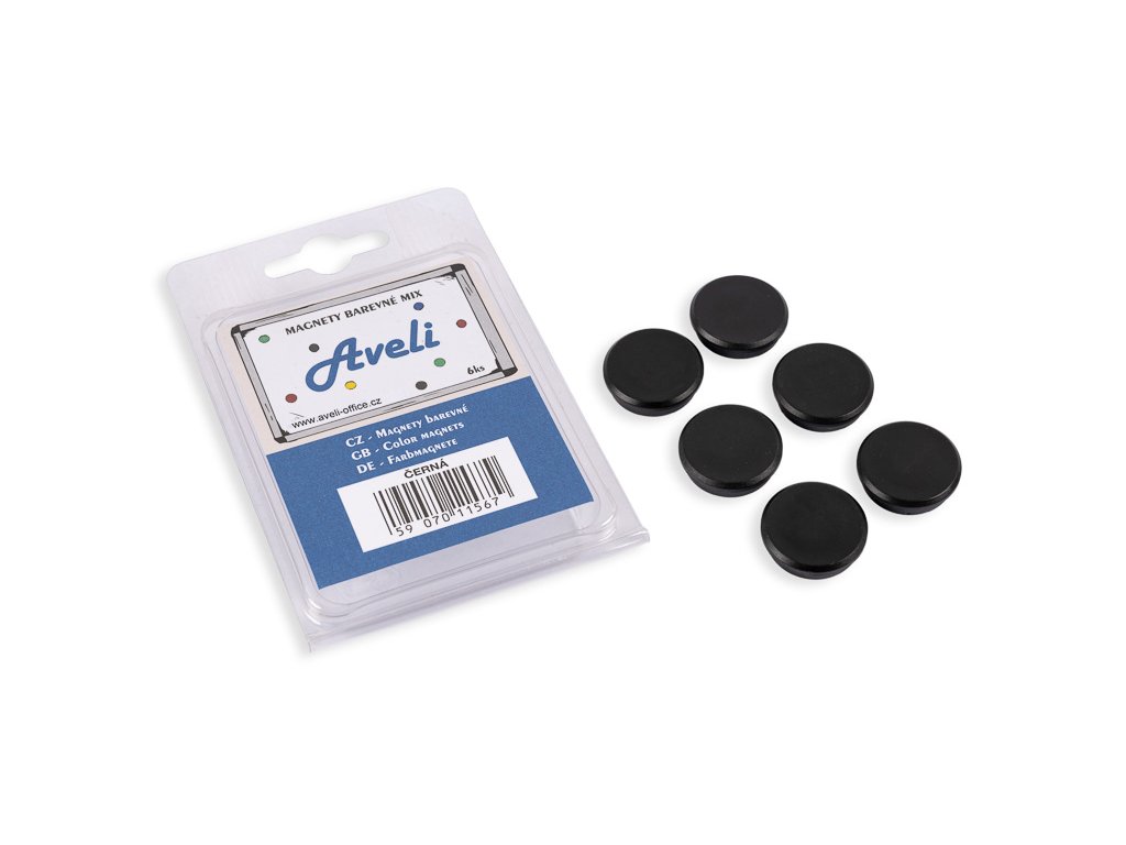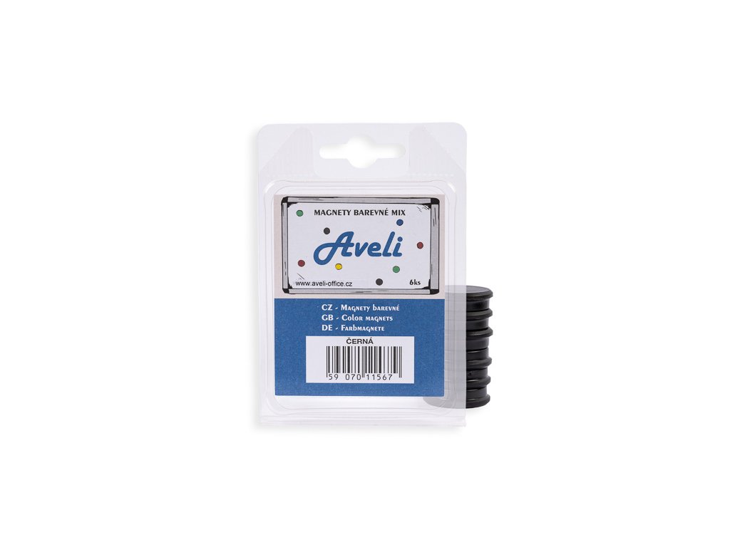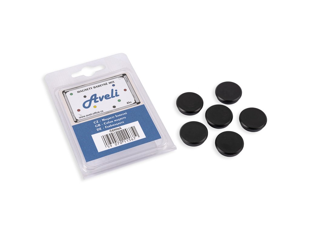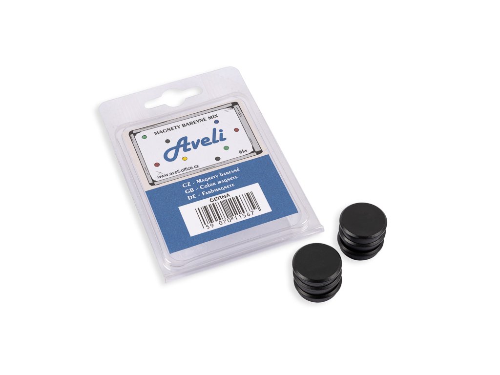 Magnety pro tabule Aveli v barevných rozlišeních.Balení 6 kusů magnetů v černé barvě