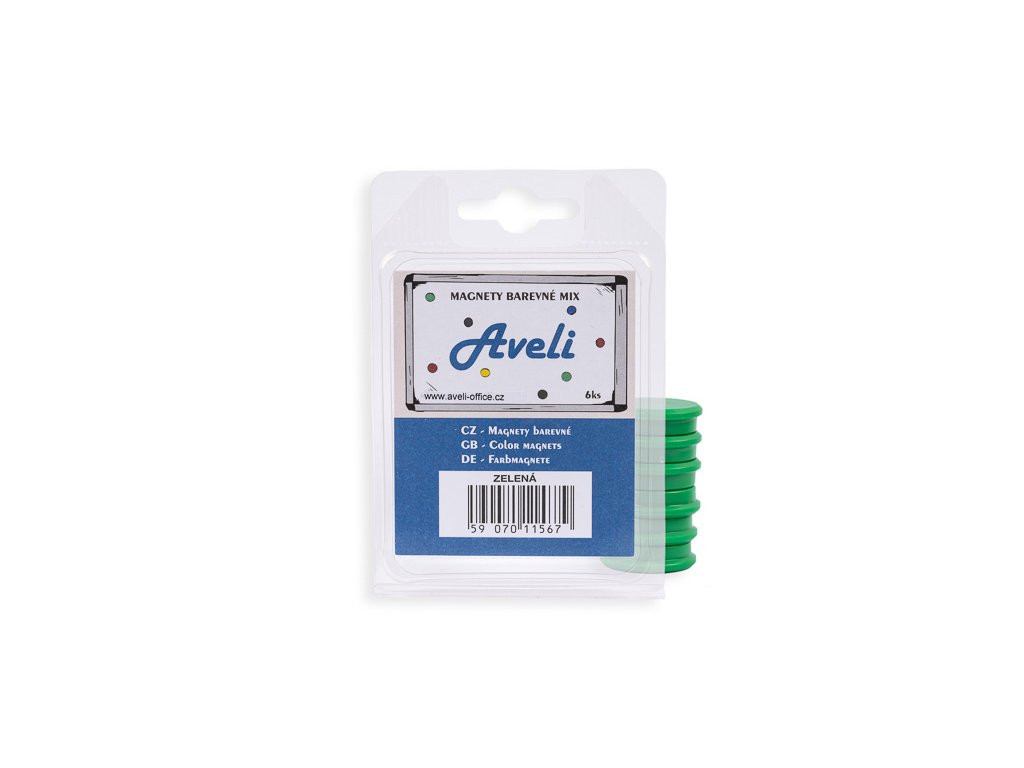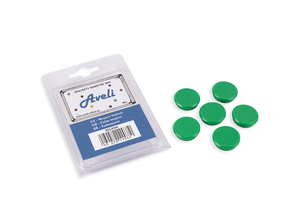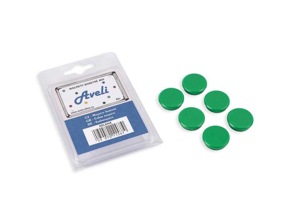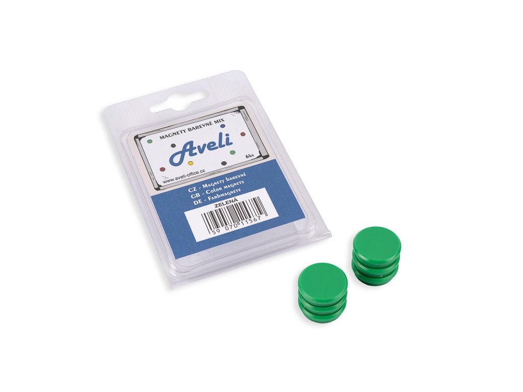 Magnety pro tabule Aveli v barevných rozlišeních.Balení 6 kusů magnetů v zelené barvě.