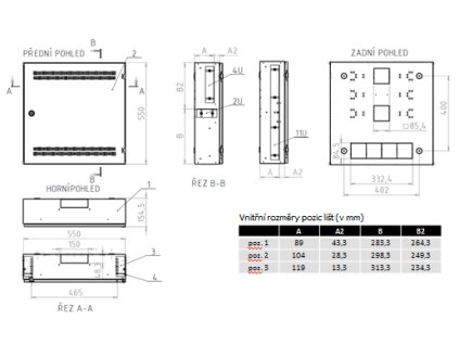 Rozvaděč SOHO nástěnný LC-18 do zdi s lištami 2U, 4U a 11U,550x550 bílá,RAL9003 s rámečkem k zazdění