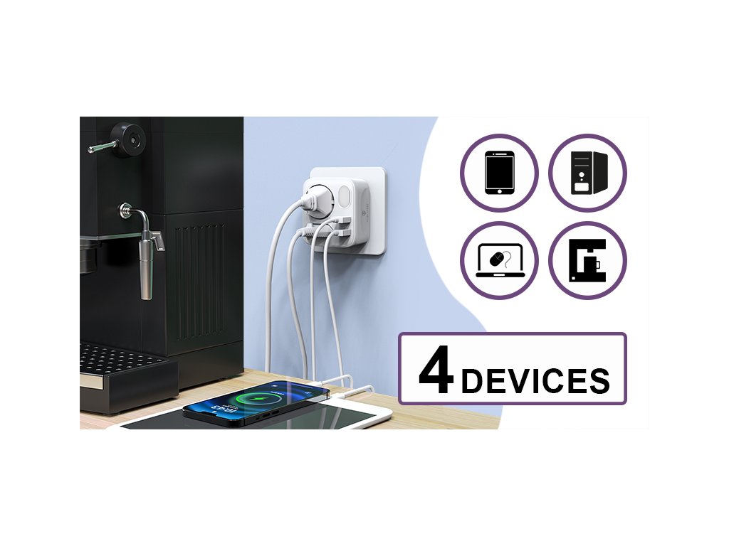 Dva AC výstupy vám umožňují připojit více zařízení najednou, Díky kompaktním rozměrům je ideální nejen pro domácnosti a kanceláře, ale například i na cesty. Nebudete už nikdy čekat ve frontě na volnou zásuvku.
