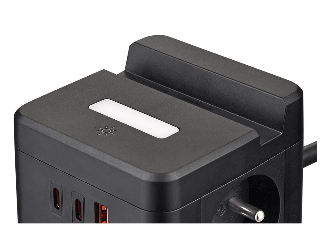 Síťový adaptér • rozbočovač • zásuvka • držák mobilního telefonu • 2 x AC (230V) výstup • 1 x USB-A (5V/3A, 9V/2A, 12V/1,5A) • 2 x USB-C (5V/3A, 9V/2,22A, 12V/1,67A) • dotykové světlo se třemi intenzitami svícení • kompaktní rozměry a design • kabel 1,4 m • možnost nabíjení až 5 zařízení současněSíťový adaptér VIKING YC23H