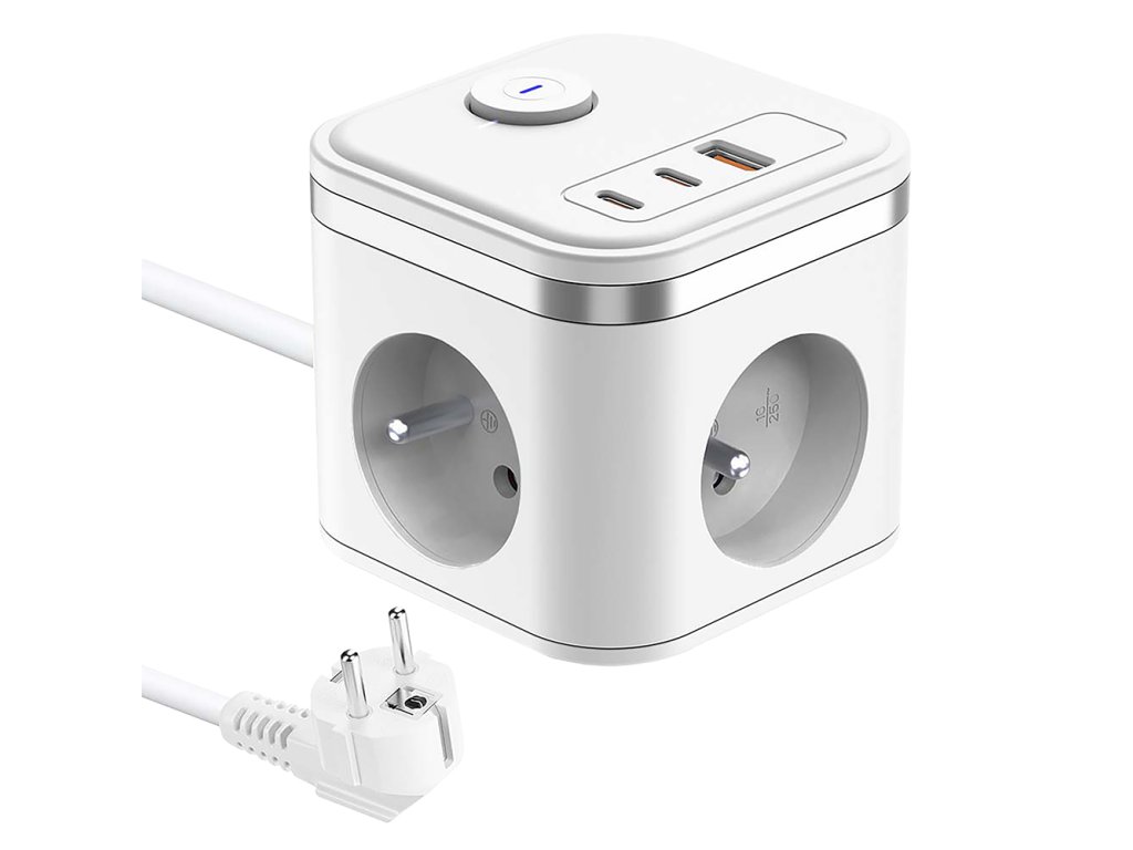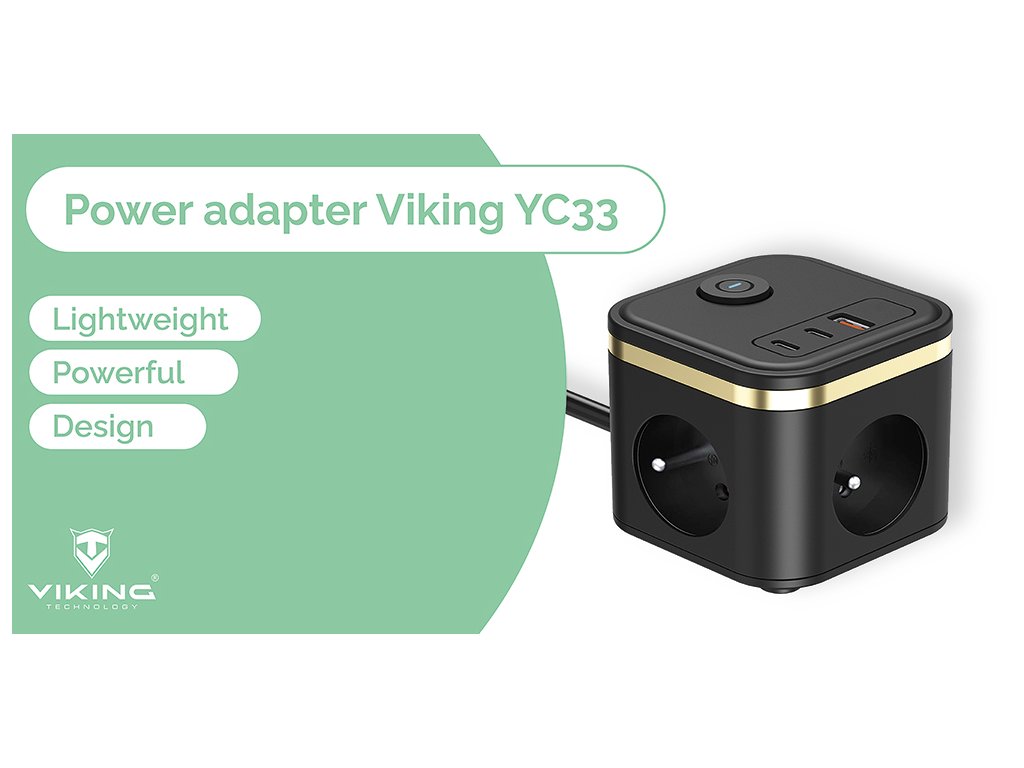 Síťový adaptér • rozbočovač • zásuvka • 3 x AC (230V) výstup • 1 x USB-A (5V/3A) • 2 x USB-C (5V/3A) • praktické tlačítko ON/OFF • kompaktní rozměry a design • kabel 1,4 m • možnost nabíjení až 6 zařízení současněSíťový adaptér VIKING YC33