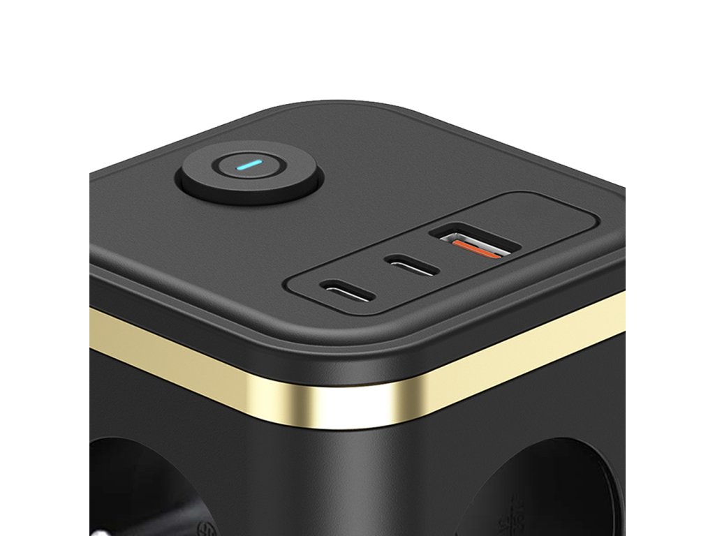 Síťový adaptér VIKING YC33, černá/Output:3xAC, 1xUSB-A,2xUSB-C/Tlačítko ON/OFF/1,4m kabel