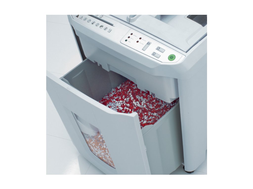• Snadná manipulace při vyprázdnění skartovaného odpadu ( koš výsuvný z přední strany).