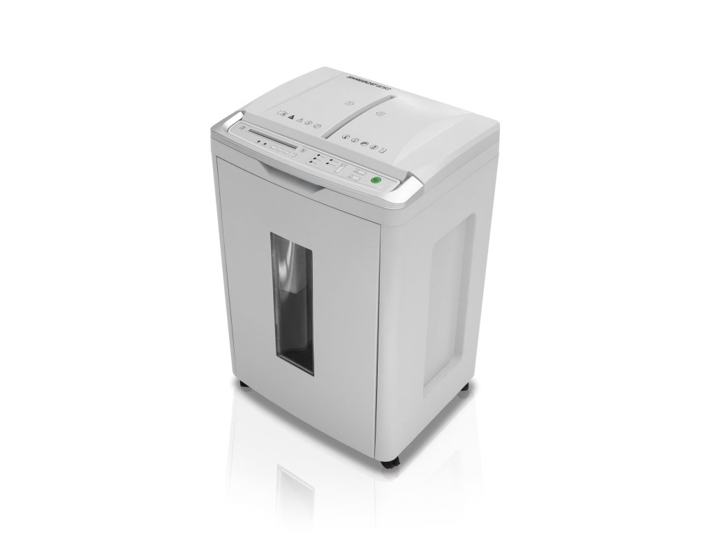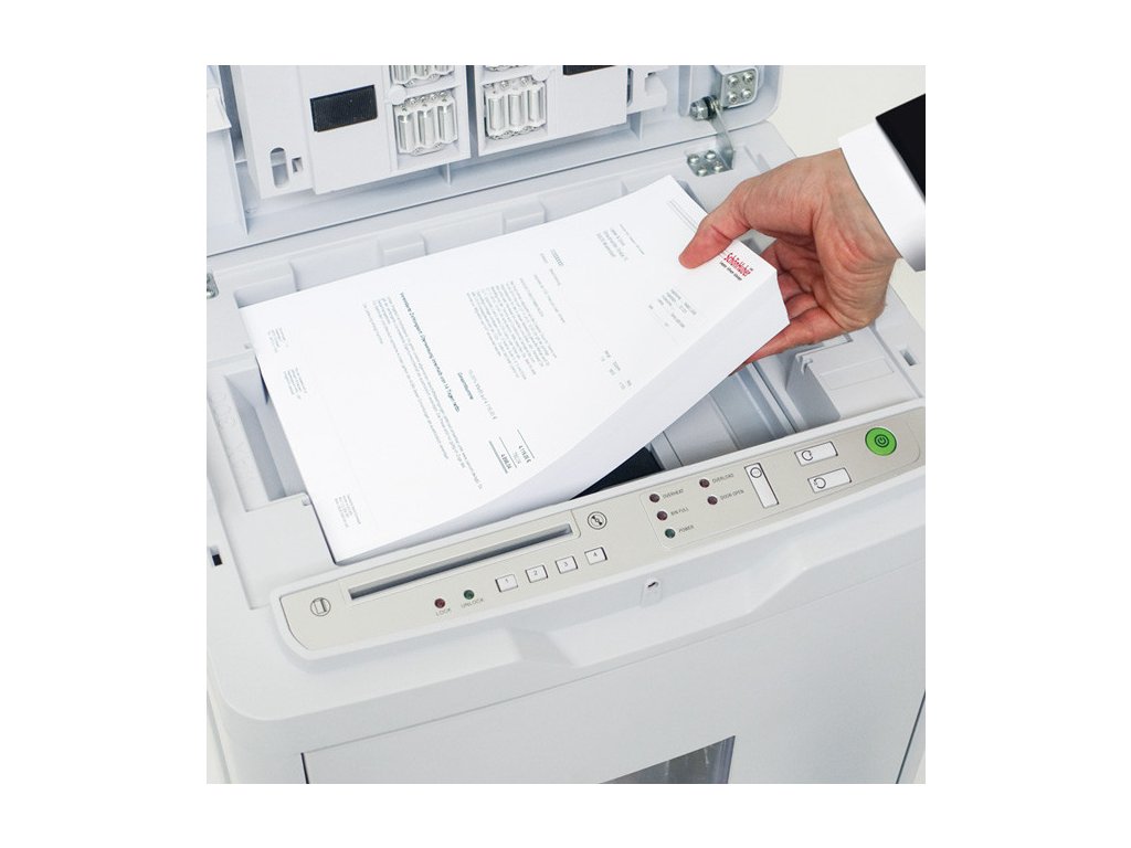 Skartovací stroj s automatickým podavačem. Zařízení je schopno na jeden pracovní cyklus při automatickém podávání skartovat až 350 listů 80g papíru na částice 4×10 mm. Objem koše 53 litrů. Oddělený vstup pro skartaci CD/DVD nebo plastových karet se samostatným odpadním košem usnadňuje následné oddělení skartovaného odpadu. Vstup pro ruční vložení a následnou skartaci až 5 listů 80 g papíru najednou.• Automatické přepnutí do režimu EcoMode (ekonomický mód s nulovým odběrem energie) v případě nečinnosti