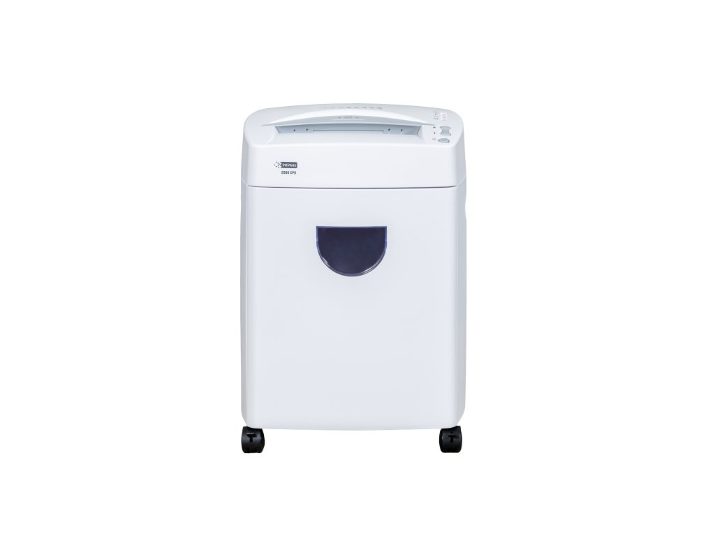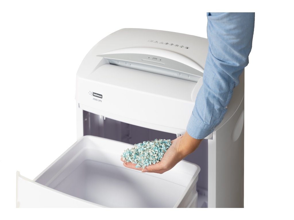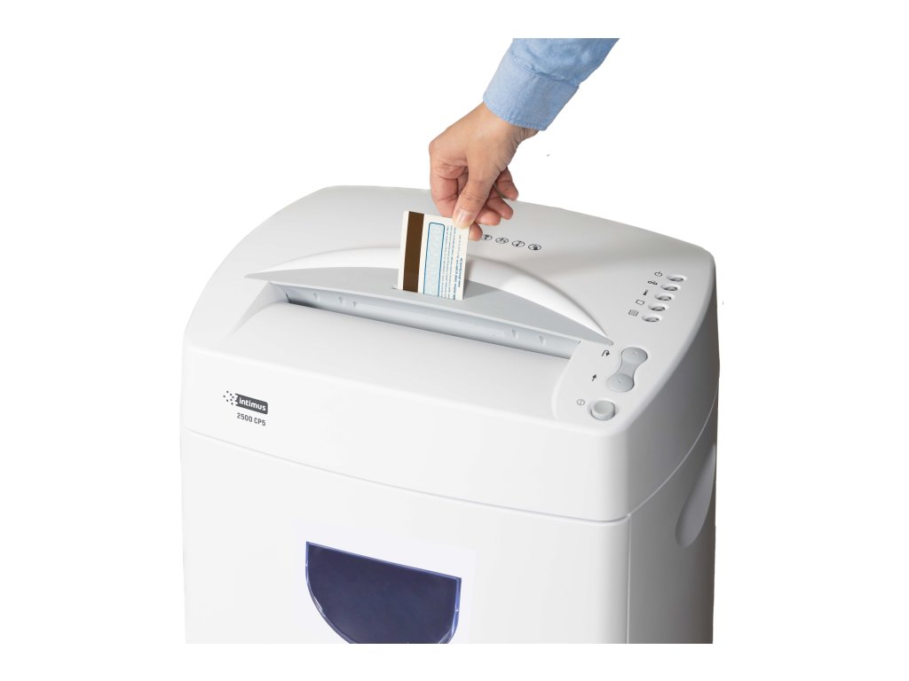- Skartovačka s příčným řezem 2 x 12 mm- Skartace papíru, sponek ze sešívačky a kreditních karet