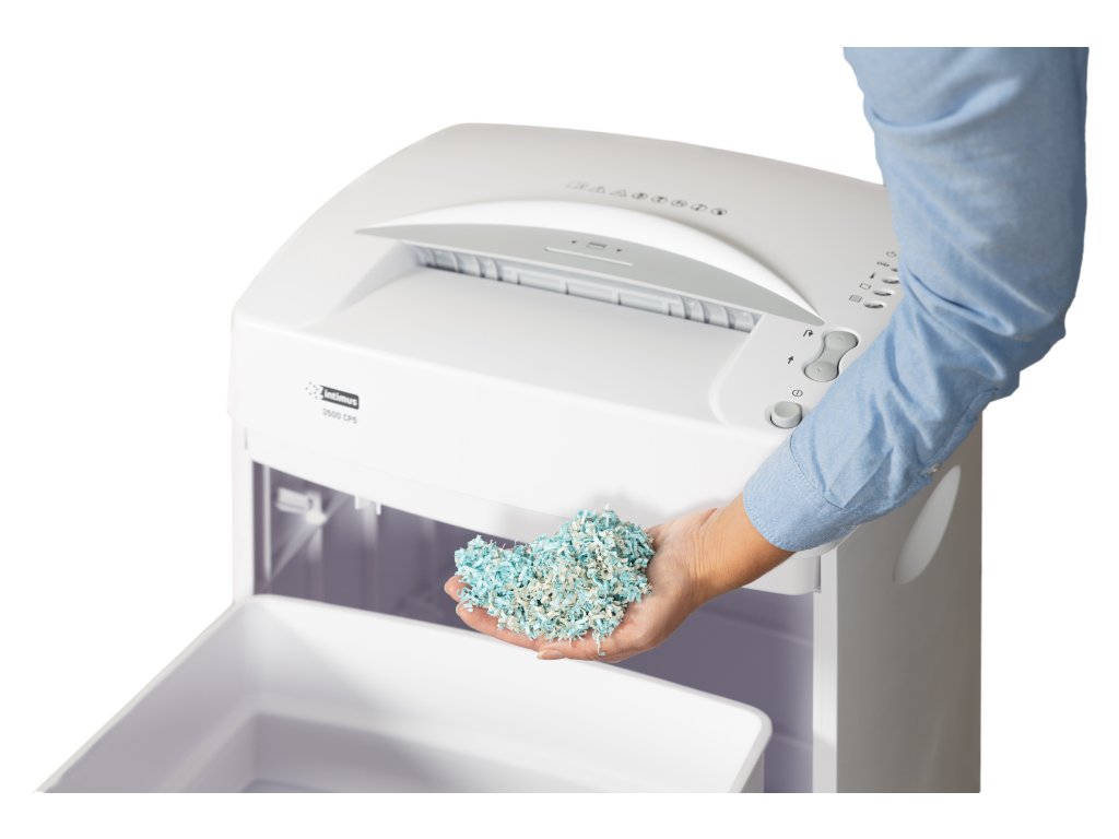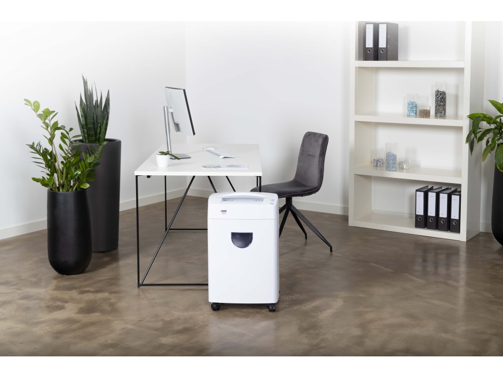 - Skartovačka s příčným řezem 2 x 10 mm- Skartace papíru, svorek, sponek a kreditních karet